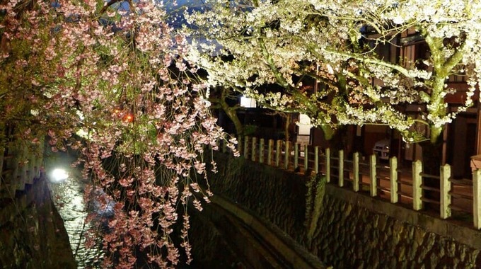 The Enako River flows quietly through the town. The cherry blossoms and pine trees lining the river are beautifully illuminated, creating an atmospheric night scene. Recommended for a night stroll with a camera in hand.