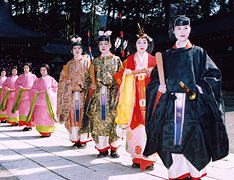 Незамужние девушки, выбранные со всей Хида, проводят ритуальную службу в синтоистском святилище одетые в традиционные облачения императрицы, наложницы императора, министров двора и придворных дам. Парад-шествие «живых кукол» при прохождении через деревню выглядит так, будто он только что сошел с иллюстрации свитка периода Хэйан. В завершение празднества разбрасываются рисовые лепешки.